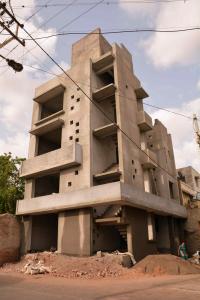 The 5 bedroom bungalow on a 135 yard corner plot for simple joint family. The ground floor consists of parking and a bedroom for elder sister, first floor has kitchen-dinning, living, terrace, puja and a bedroom for mother, second floor consists of a bedroom for couple and their daughter while third floor has a bedroom for younger sister and terrace. Lift and ramp is provided as the daughter is physically challenged.